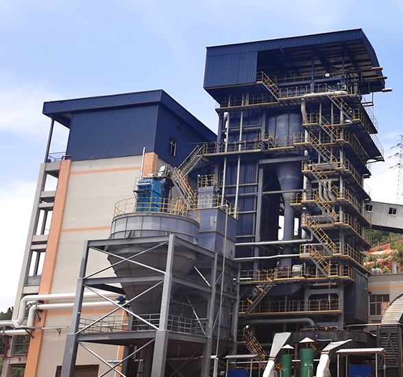 工作流程: 燃料通過輸送機送入爐膛,在密相區(qū)與空氣混合,流化并燃燒,高溫煙氣攜帶大量正在燃燒的固體顆粒沖刷稀相區(qū),一邊燃燒,一邊將燃燒釋放的熱量傳遞給受熱面,加熱工質(zhì)(水),未燃燼的固體顆粒進入分離器,被收集下來,通過返料器重新送回密相區(qū),循環(huán)燃燒,從而提高燃燒效率。燃燼的固體細小顆粒隨高溫煙氣逃逸出分離器,沖刷對流受熱面和尾部受熱面,經(jīng)除塵器除塵后排入大氣。