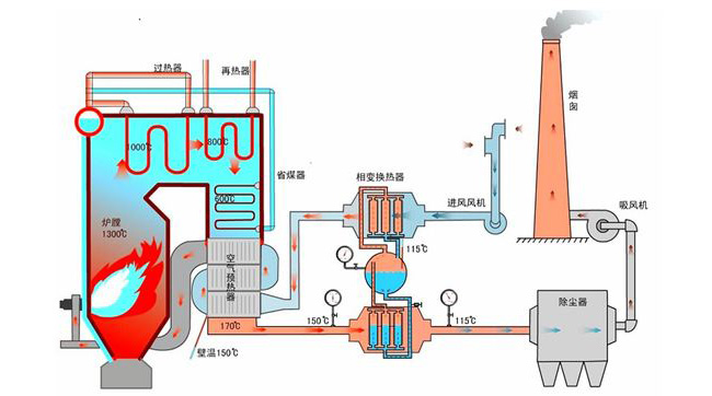 鍋爐本體內(nèi)采用等流速和低流速設(shè)計(jì),本體阻力在設(shè)計(jì)工況時(shí)均小于900Pa,有利于與其它設(shè)備結(jié)合并降低系統(tǒng)電耗。